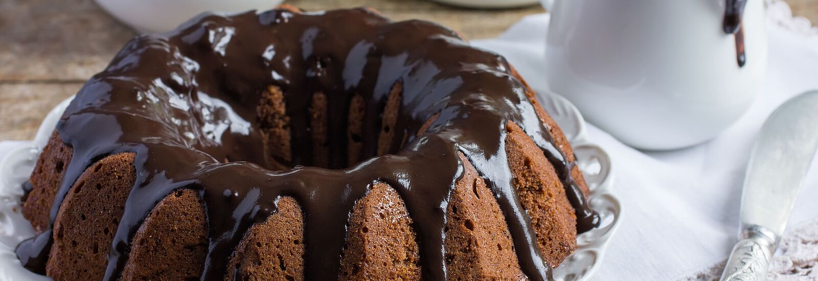 Überziehe den Teekuchen mit der Schokoladenglasur und serviere ihn deinen Gästen.